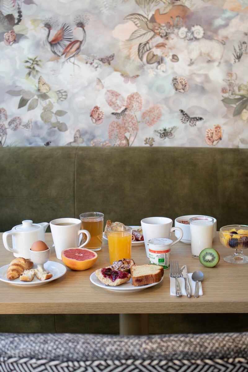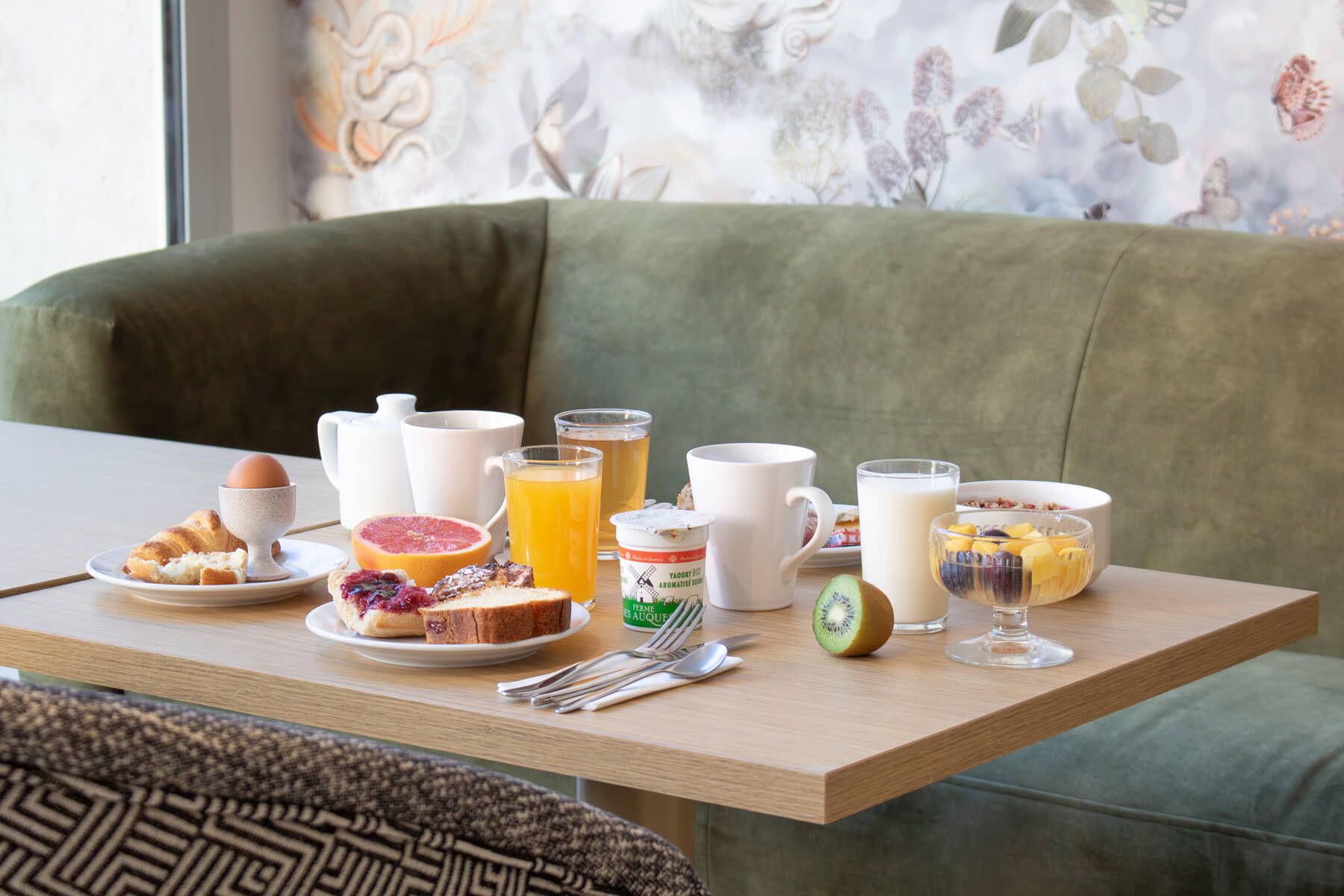 Start your morning with our peaceful breakfast buffet, available from 7:00 AM (until 10:00 AM on weekdays & 10:30 AM on weekends). Begin your day on the right foot by savoring a wide selection of fresh and local products, including various breads, pastries, sweet and savory toppings, dairy products, fruits, and more. The breakfast buffet is priced at €12.00, and we’re sure you’ll love it!